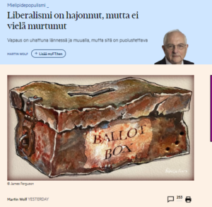 Martin Wolf aloittaa kolumninsa liberalismin vaikeuksista. Demokratian taustalla olevaa ajatusta – että hallitukset ovat vastuussa hallituille – arvostetaan edelleen suuressa osassa maailmaa. Miten muuten selitetään se tosiasia, että yli…