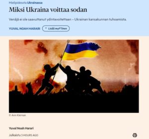 Venäjän tappio on varmaan meidän eikä edes nykyisin salaien toive. Mutta asiaa pitäisi ajatella positiivisesti: Meidän pitää toivoa ja työskennellä Ukrainan voiton puolesta. FT israelilaisen historioitsijan Yuva Naaoh Hararin artikkeli …