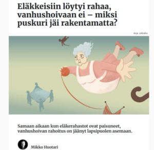 Tämän päivän lukemistosta löytyy kaksi artikkelia, joiden ajankohtaisuus on koskettava. Eläkkeisiin löytyi rahaa, vanhushoivaan ei – miksi puskuri jäi rakentamatta? | Demokraatti.fi https://www.ft.com/content/d419bd2d-a6ba-44a5-a93a-1276f3e5d2d7 Demokraatin artikkelin sanoma on, että hoivaan pitää…