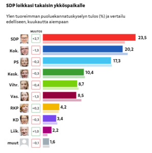 Nyt kysytään, mikä gallupissa on merkittävintä. Mukavaa on SDP on suurin ihan ansaitusti; se on selkeän ja vakaan toiminnan ansioita. Suurempi kysymys on, mitä merkitsee, että hallituspuolueiden yhteenlaskettu kannatus on…