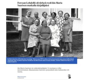 Ilkka Kononen kirjoitus Forssan lehdessä otsikolla: Forssan Lehdellä oli tärkeä rooli Ida Maria Saarisen matkalla kirjailijaksi Ida Maria Saarisen tie esikoiskirjailijaksi 73-vuotiaan ei ollut suoraviivainen. Maanantaina Saarisen syntymästä tulee…