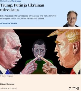 Gideon Rachman , geopolitiikan syvällinen asiantuntijana kolumnissaan viittaa vahvasti ja arvostavasti Alex Stubbiin ja Suomen esimerkkiin. Laajemmin Ukrainan tulevaisuutta ajatellen keskeiset eurooppalaiset hallitukset ymmärtävät, ettei keskustelu voi rajoittua pelkästään alueeseen…