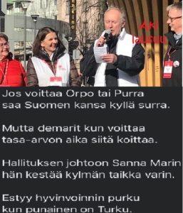 Super Star Sannaa seuraamaan tulleet saivat mahdolliseen tutustua Sd-ehdokkaiden enemmistöön. Eduskunnasta pois jäävä Katja Taimela spiikkasi mukavasti ensin Sannan sitten vaalipiirin hienot ehdokkaat. Fiksusti esiintyvät ehdokkaamme: Vaikutelma on vakuuttava. Aki…