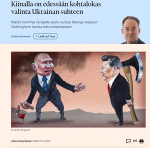 Gideon Rachman kirjoittaa: Valinta toimittaa Venäjälle aseita viittaa siihen, että Kiina uskoo, että lisääntynyt kilpailu Yhdysvaltojen kanssa on väistämätöntä – ja ehkä toivottavaa. Sitä vastoin päätös olla antamatta Venäjälle aseita…
