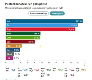 Puoluekannatuksessa on meneillään trendi, jossa Kokoomus laskee ja persut ja demarit nousevat. Mutta muistetaan, että mielipiteiden kehityksen muutos ei ole ennakoitavissa oleva luonnonilmiö vaan mittauksen lopputulos on monen muuttujan yhdistelmä….