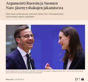 Otsikko saa todennäköisesti uutta ilmaa nyt, kirjoittaa FT:ssä Richard Milne . Sekä Ruotsin pääministeri että Naton johtaja kumarsivat tiistaina vihdoin väistämättömälle ja myönsivät julkisesti, että Suomi voisi liittyä sotilasliittoon ennen…