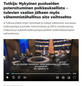 Kyllä kokenut toimittaja näkee sumeuden läpi. Hän ei ole sopuli, vaan itsenäinen. Näin luonnehtisin Unto Hämäläisen selkeää kantaa: Nykyinen hallituspohja on vahvoilla! Mieleeni palasi , että edellistä puolueiden kannatusgallupista kirjoittamaani…