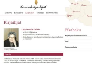 Demokraatissa oli kuolinilmoitus Sinikka Luja -Penttilästä. Ulpu Iivari kirjoittaa hänestä asiallisen nätisti https://www.facebook.com/ulpu.iivari/posts/pfbid02Dj85kH9e1tVQeRK8dM5RPrnTfPNi1U4sD7iVTAG5HBK2PQCN64pRARNoxS1jztpTl Tähän sellainen mukava muisto Sinikan ja Sulon vierailusta. Venla-kirjassa käytiin Naantalissa todennäköisesti täällä meidän pihalla. Ihan täyttä…